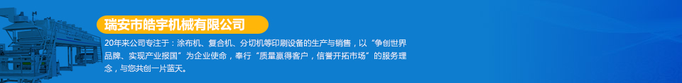 瑞安市皓宇機械有限公司是瑞安一家私營責(zé)任有限公司,注冊資金200萬,員工40余人,是具有獨立法人地位,專業(yè)生產(chǎn)定做各種非標(biāo)準(zhǔn)涂布機、復(fù)合機、印刷機、分切機、壓膜機等機械設(shè)備的制造廠。公司的機器主要用于生產(chǎn)保護(hù)膜、膠帶、雙面膠、不干膠、相紙、油畫布、汽車防爆膜、熱轉(zhuǎn)印、燙金膜、離型膜、離型紙、軟包裝印刷、軟包裝復(fù)合、軟包裝分切等各種產(chǎn)品...  [詳細(xì)]